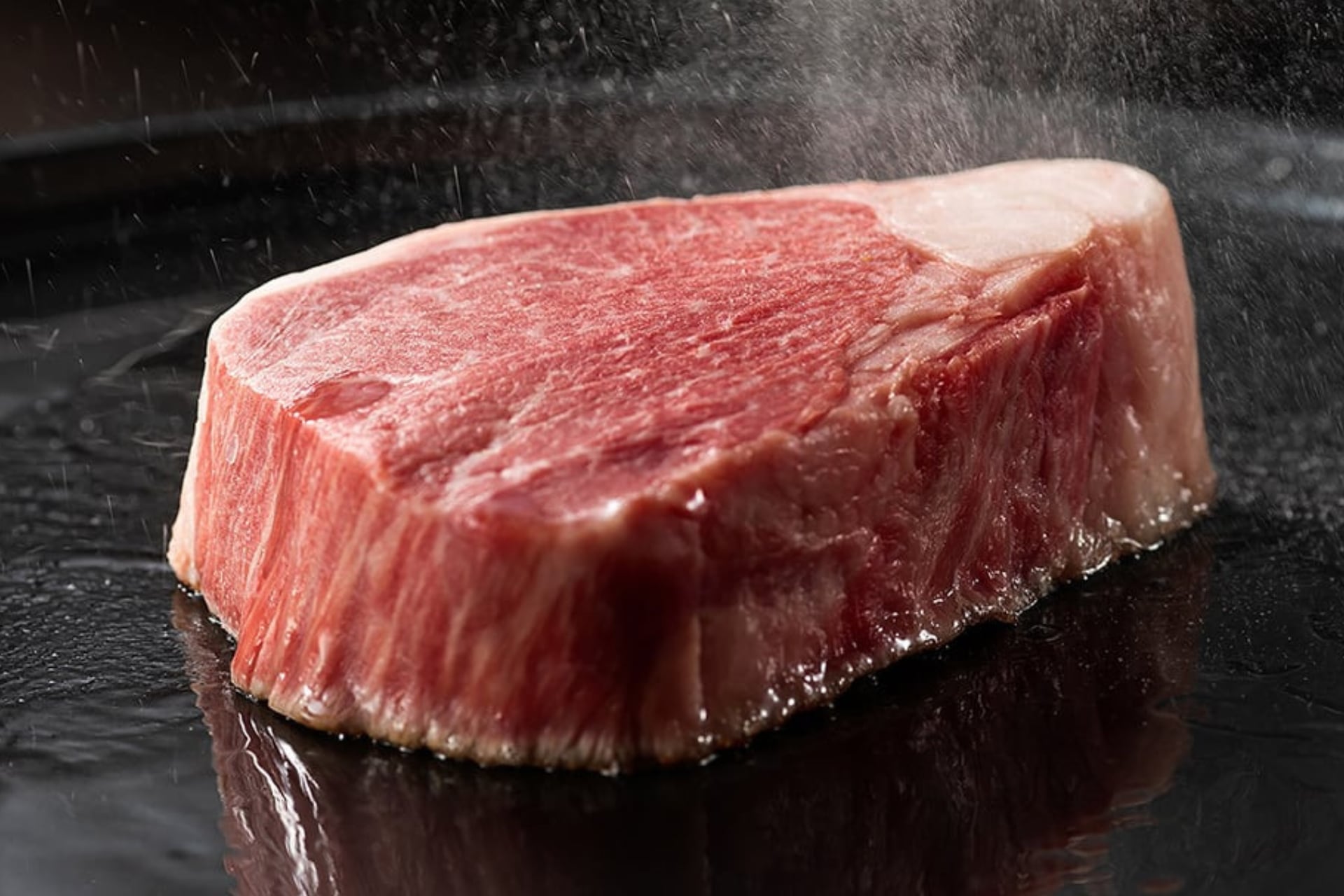 九州牛のロースステーキは、きめ細やかな肉質と、品よく溶け合う脂のバランスが魅力です。